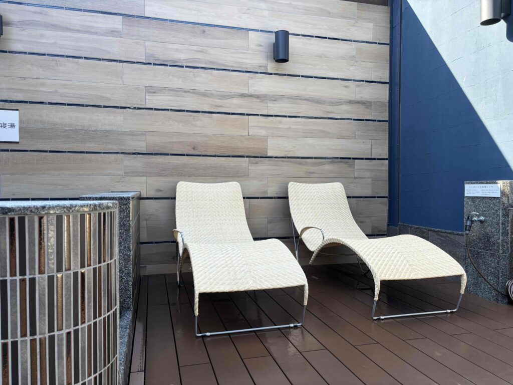 この度約半年の休業を経て、大規模リニューアルされました。その際に女性露店風呂外気浴休憩スペースにヤマカワラタンのサンラウンジャーを3台導入いただきました。サウナ後の外気浴や休憩時にご利用ください。